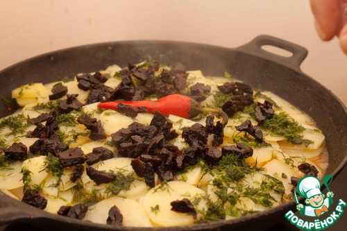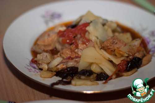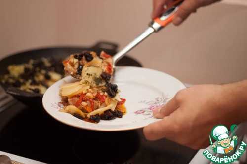 И вот мы подошли в последней стадии нашего вмешательства в процесс готовки) выкладывание зелени и чернослива))) Тут уж, как хотите, хоть слоями, хоть кучками, но слоями лучше, я считаю.)