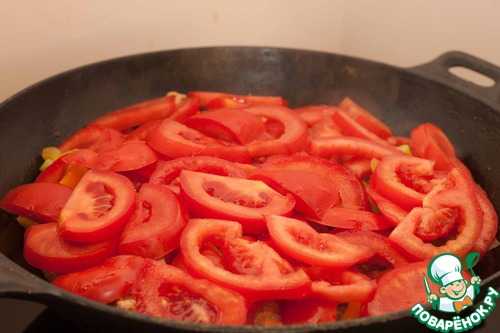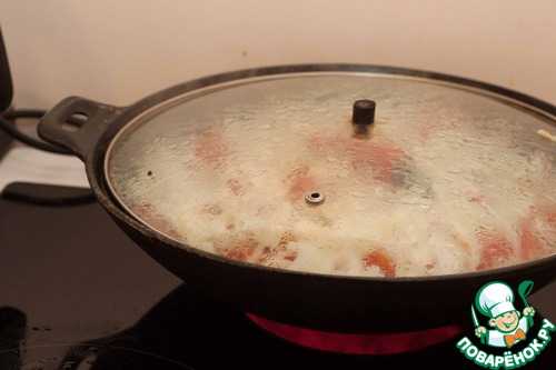 Выложив перец, можно прикрыть крышкой наше блюдо и заняться другими овощами…