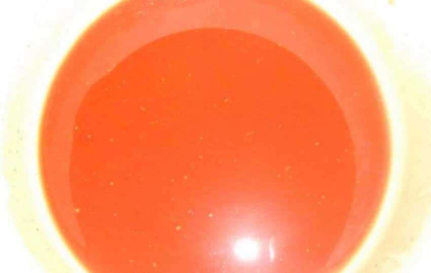 1. В отдельной посуде смешайте пасту, воду и понравившиеся специи. Воды необходимо столько, чтобы она потом покрывала все содержимое тарелки. Тщательно перемешайте заливку до однородности.
