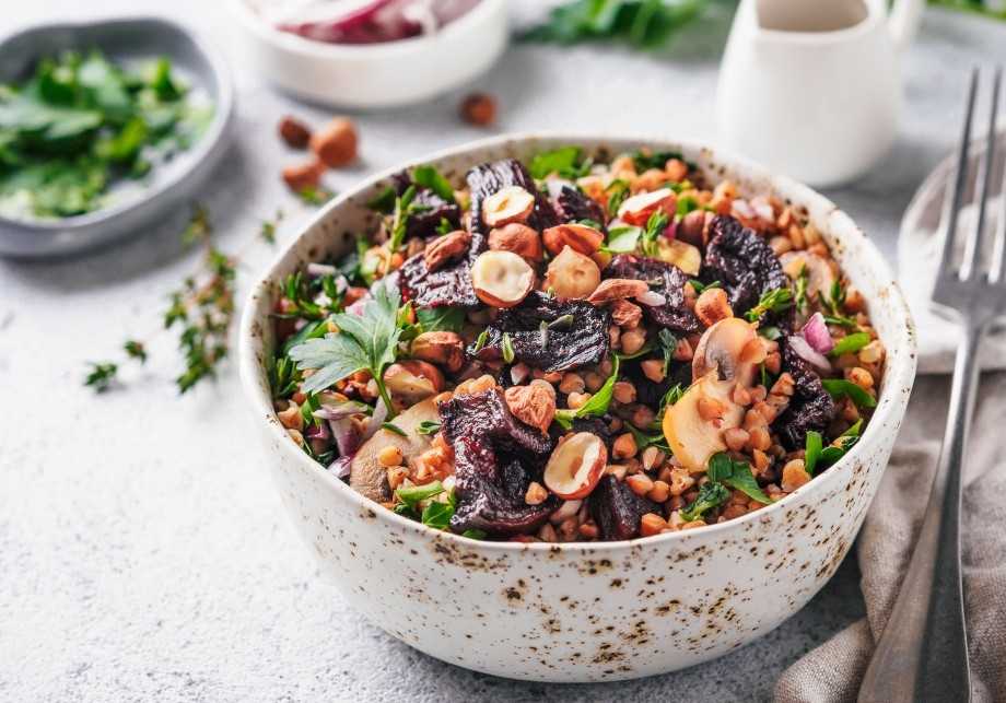 Основные принципы: сначала варится какая-то полезная крупа – идеально подойдет гречка или киноа, красный рис или даже овсянка (лучше без глютена). Не берите за основу бобовые — это будет неимоверно тяжело для пищеварения. И вообще бобовые — это не крупы, а отдельная категория растительных белковых продуктов. Основу лучше всего смешать с каким-нибудь полезным соусом, чтобы убрать сухость и придать блюду интересный вкус.