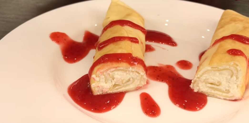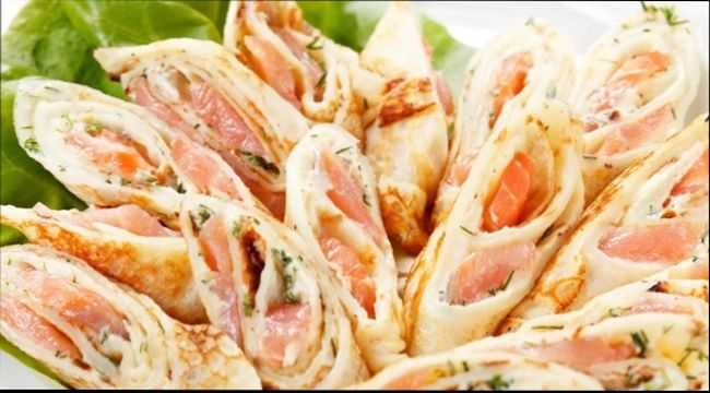 - Начинку разложить на блинчики, свернуть в нужную формочку.
