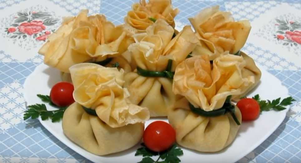 Есть необычная праздничная подача угощения в виде мешочков. Делается быстро и выглядит очень эффектно.