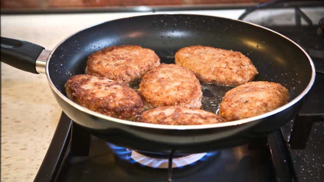 - Сформировать котлеты из фарша. Обжарить на раскаленном растительном масле по 4-6 минут с каждой стороны. Лучше использовать рафинированное подсолнечное масло без постороннего запаха.