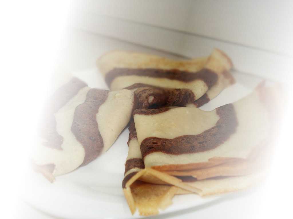 Как можно судить из названия, это рецепт оригинальных двухцветных блинчиков. При желании можно вырисовывать темным тестом интересные узоры.