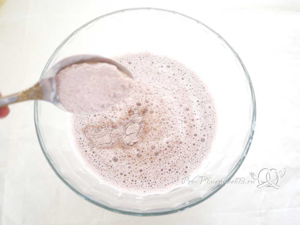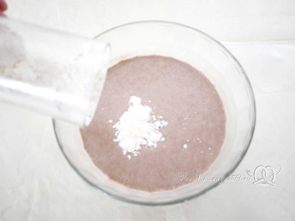 - Соедините сухие компоненты и, просеивая, постепенно введите в смесь.
