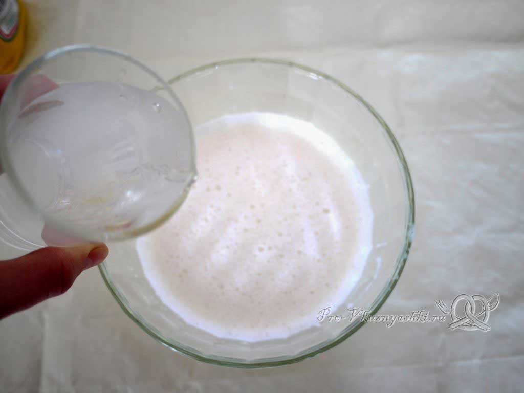 - Как только исчезнут все комочки, начните разводить тесто до нужной консистенции.