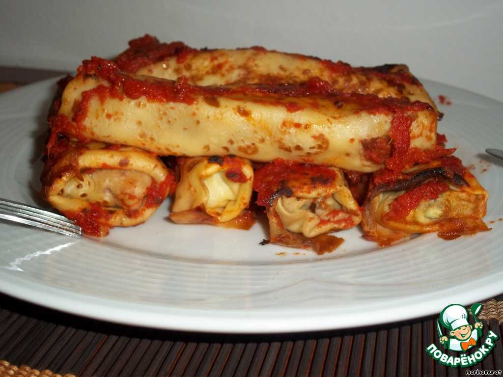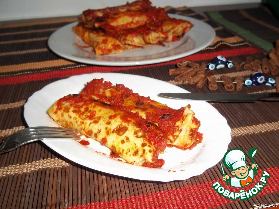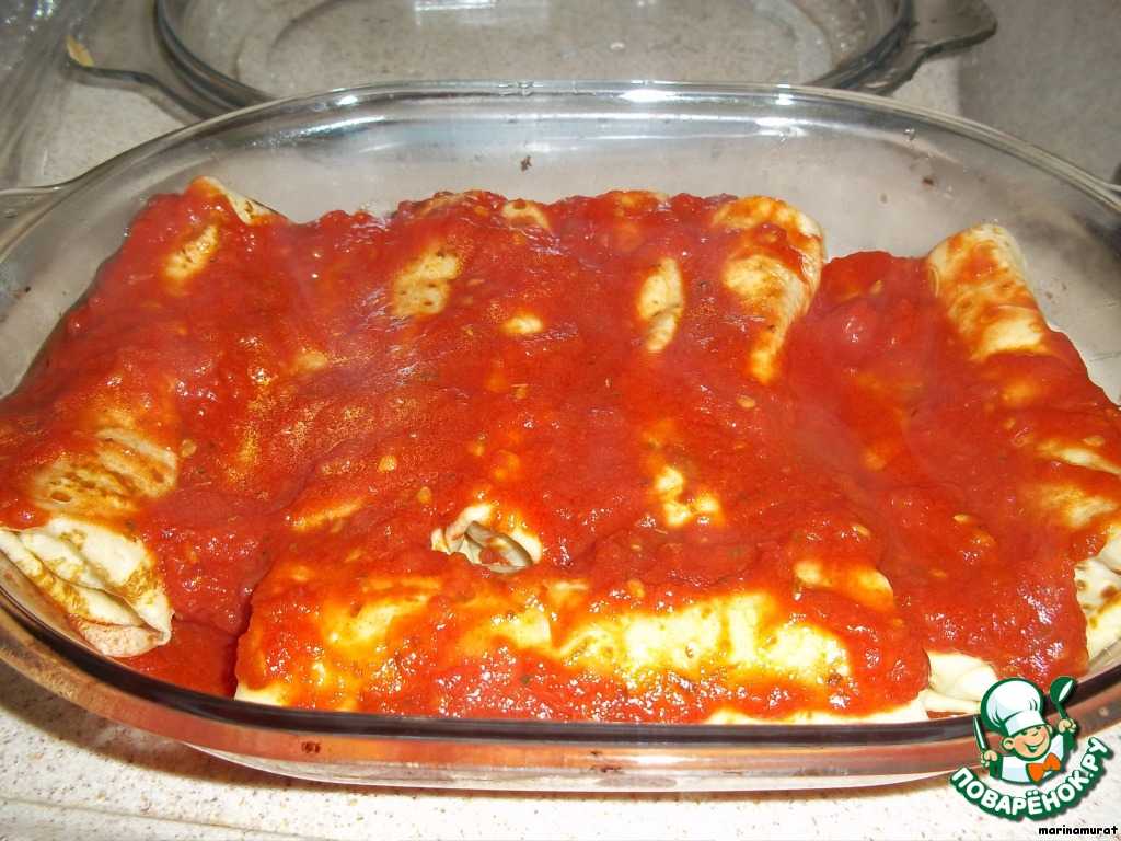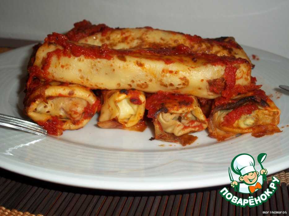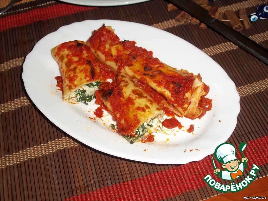 Рецепт «Блинчики со шпинатом в томатном соусе»: