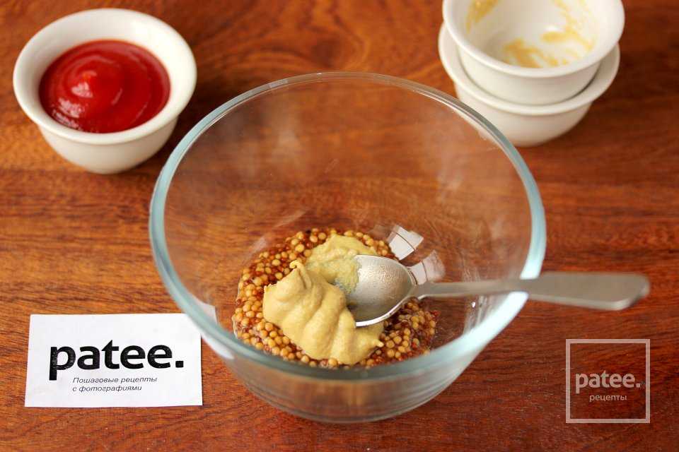 Добавляем кетчуп в смесь двух горчиц и перемешиваем смесь.