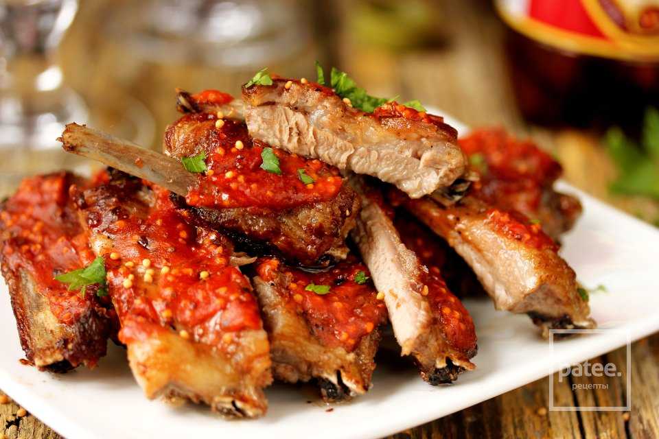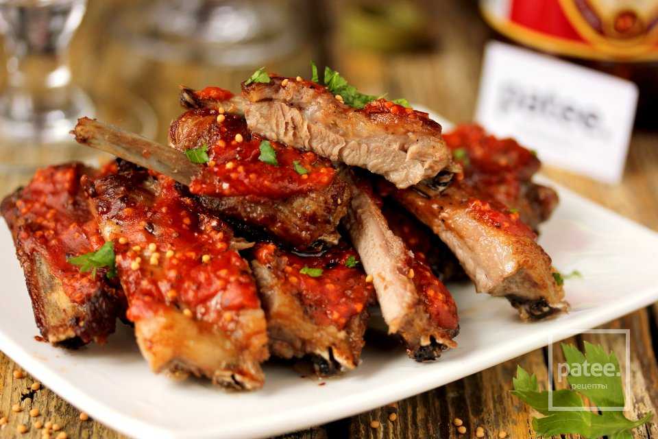 Если в вашем доме часто собираются весёлые компании, если вы любите посидеть с друзьями в дружной и ненавязчивой атмосфере за бокалом пива- тогда этот рецепт для вас! Свиные рёбрышки, рецепт приготовления которых я хочу вам сегодня показать, отлично подойдут для подачи к пиву, хотя, конечно же, это не аксиома- такие свиные рёбрышки станут прекрасным обеденным блюдом, только подайте к ним какой-нибудь соответствующий гарнир, к примеру, вареный картофель и салат из помидоров и огурцов. Нарезанные по рёберной кости, рёбрышки очень удобны в подаче, а покрывающий их густой горчично-томатный соус не стекает и придаёт и без того сочному мясу дополнительный вкус, аромат и пикантность