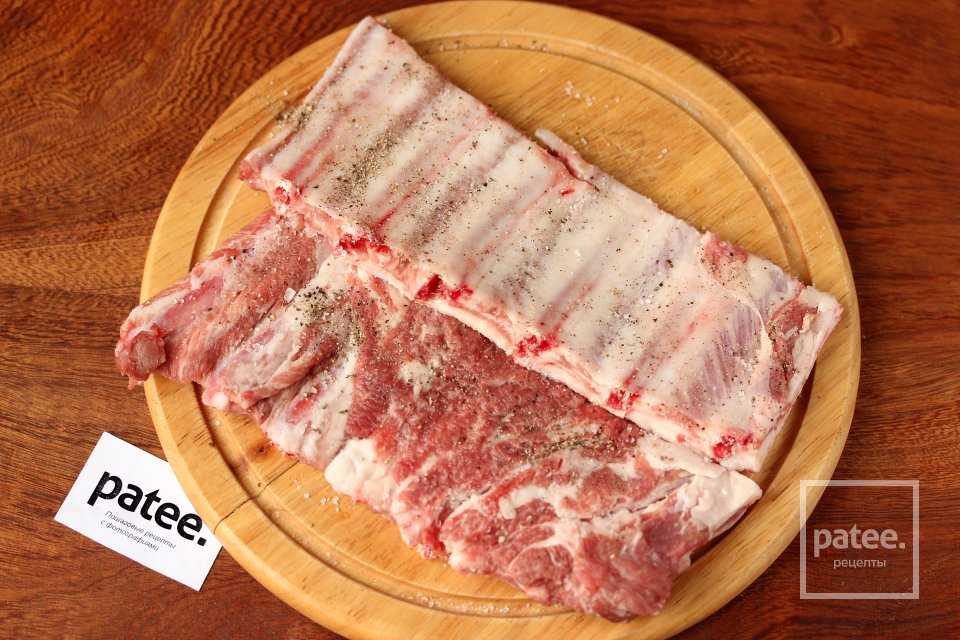 Также рёбра натираем чёрным молотым перцем с двух сторон.