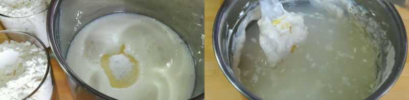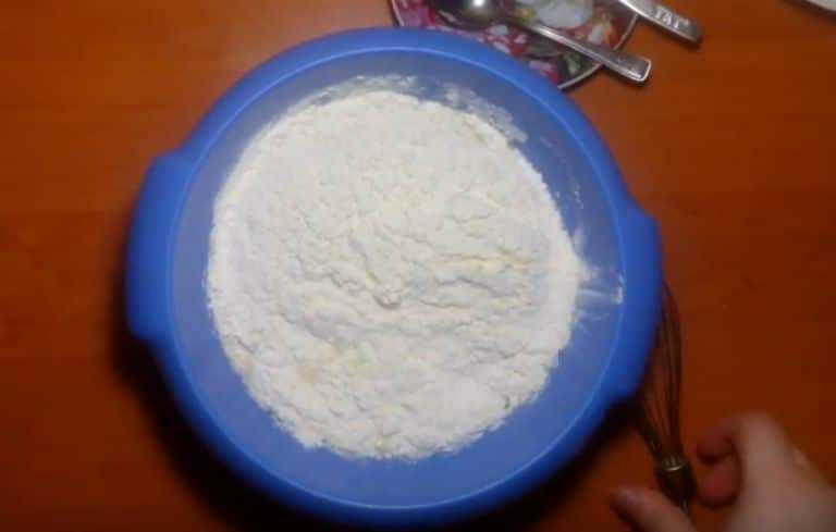 - Отдельно соединить муку с щепоткой соли, оставшимся сахаром.