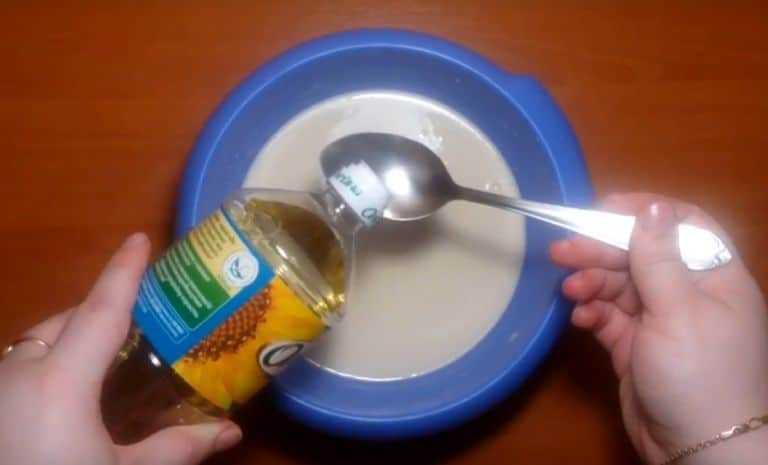 - Добавьте 2 ст. л. растительного масла и перемешайте получившееся тесто.