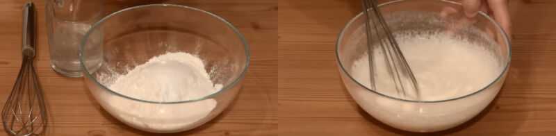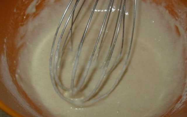Алгоритм приготовления схож с классической рецептурой, но имеет небольшое отличие. Сначала готовите достаточно густое тесто, а затем постепенно вливаете жидкость, чтобы избежать появления комков.