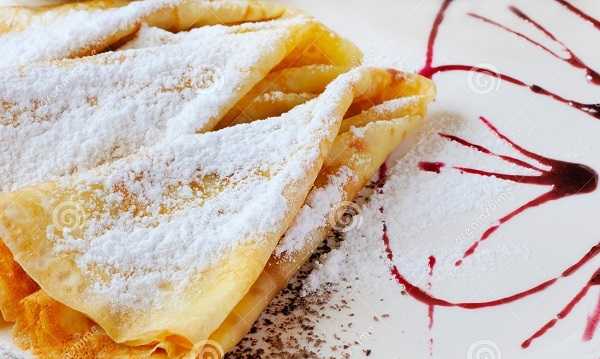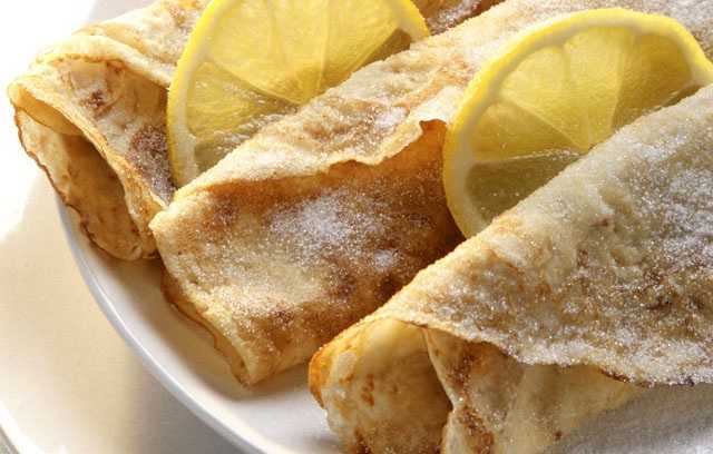 - Блинчики украсьте сахарной пудрой и лимоном.