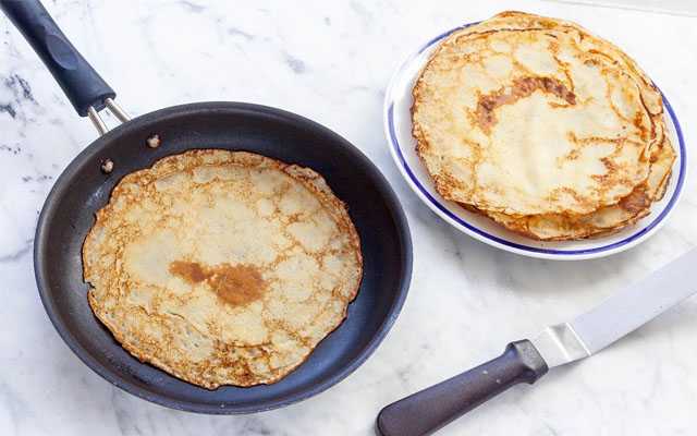 Важным фактором является и то, что сковородка должна использоваться только для жарки блинов. Если она будет общего использования — то целых и красивых блинов нам не видать.