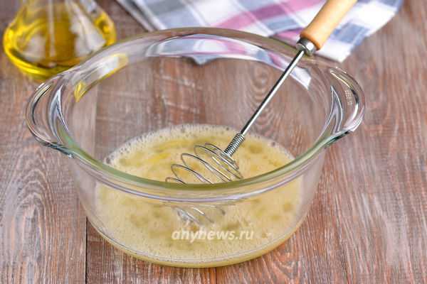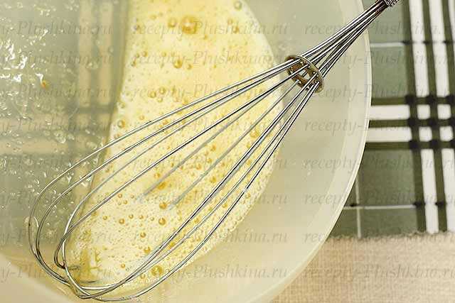 Взбиваем венчиком до пены, пока сыпучие продукты не растворятся.