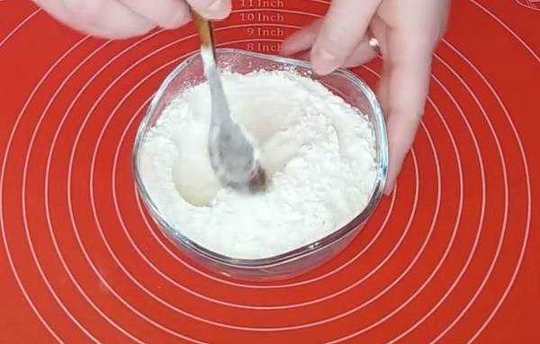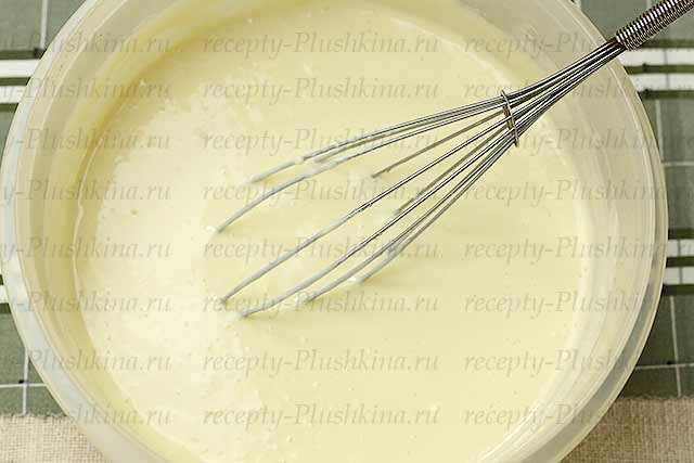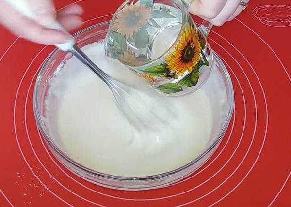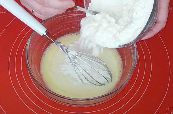 - Постепенно подмешивайте муку до образования однородной массы без примеси комочков.