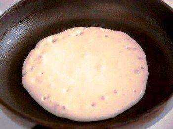 Чтобы такие блинчики не порвались при выпекании, перед тем, как их жарить, тесто должно немного постоять (15 минут). Чтобы блинчики получились еще толще и пышнее, можно накрывать сковородку крышкой и выпекать на медленном огне.