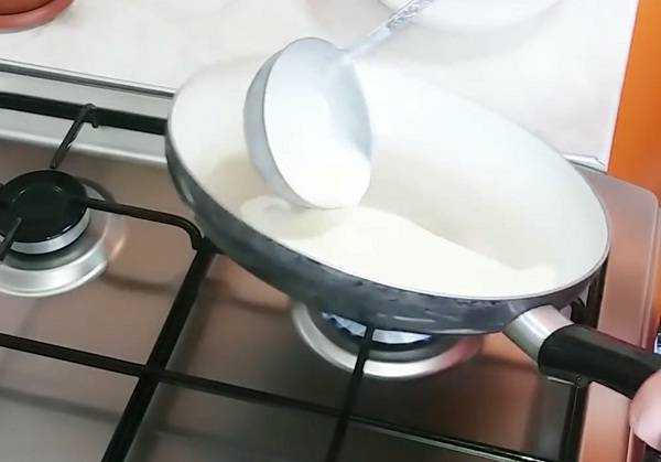 Сковороду ставим на огонь ниже среднего и хорошенько ее прогреваем.