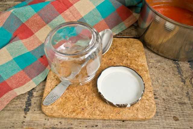 Банки, крышки и ложку (черпак) моем, обливаем крутым кипятком. Затем сушим банки в жарочном шкафу. Посуда для заготовок на зиму должна быть стерильной.