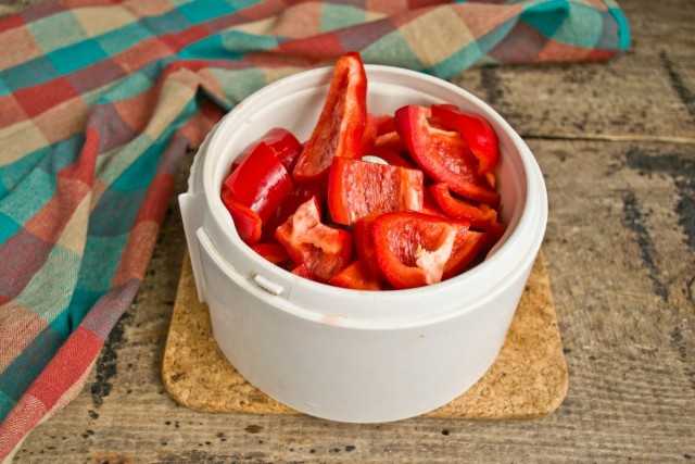 Кладём нарезанный перец в блендер, превращаем в пюре