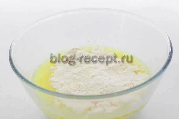 4. В получившуюся смесь просеять муку. Делать это нужно обязательно, и даже желательно два раза. Во время этой процедуры мука насыщается кислородом. А это нужно для того, чтобы изделия получились легкими и воздушными. К тому же в них будет появляться больше дырочек.