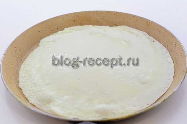 Тесто наливаете половником, равномерно распределяя его по всей поверхности сковороды тонким слоем.
