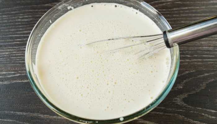 - Мешаем тесто, потому что за то время, пока оно стояло, мука осела.