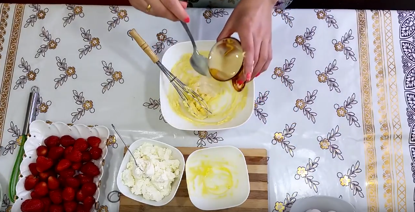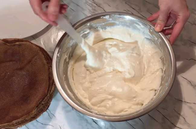 Этот крем состоит из заварной основы и отвешенной ряженки.