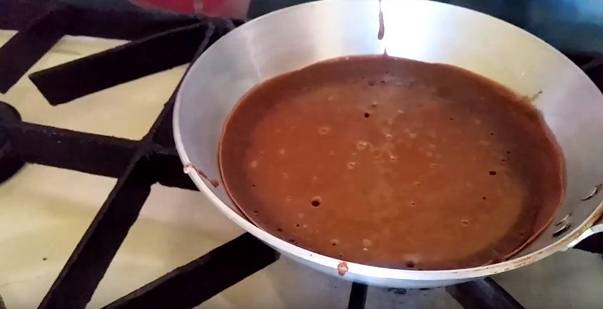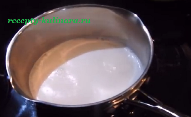 - Поставьте сотейник на плиту и, при непрерывном помешивании, доведите смесь до кипения.