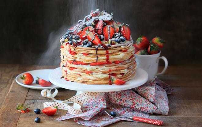 Порадуйте своих близких очень нежным тортом из блинов со сметанным кремом. Прослойка из абрикосового джема делает блинный торт по этому рецепту особенно вкусным.