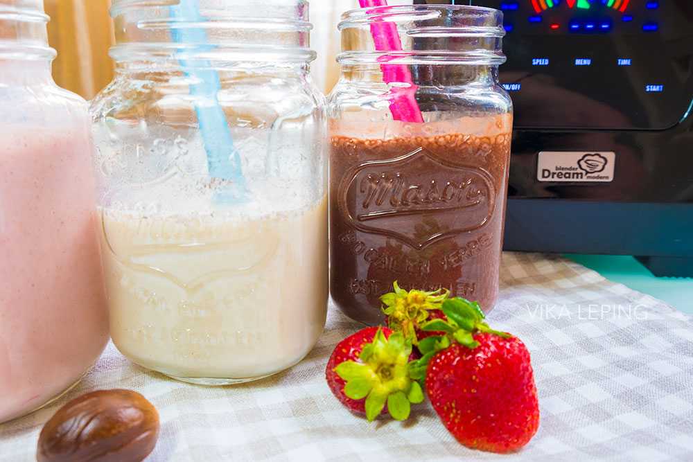Краткий рецепт: молочный коктейль с бананом, с клубникой или с шоколадом