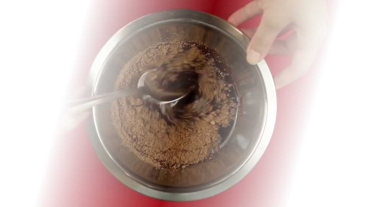- Мука, какао и сахар смешиваются и порционно вводятся в кефир, чтобы избежать комочков.
