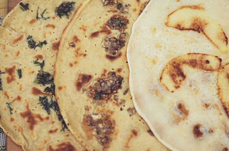Печь из него большие или средние блинчики на хорошо разогретой сковороде, предварительно смазанной сливочным или растительным маслом, на среднем огне около 1,5-2 минуты с одной стороны (пока поверхность не схватится) и 1 минуту с другой.