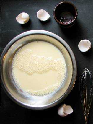 Сначала следует замесить тесто, взбив яйца с сахаром, ванилином и солью, после чего эту смесь соединить с молоком.