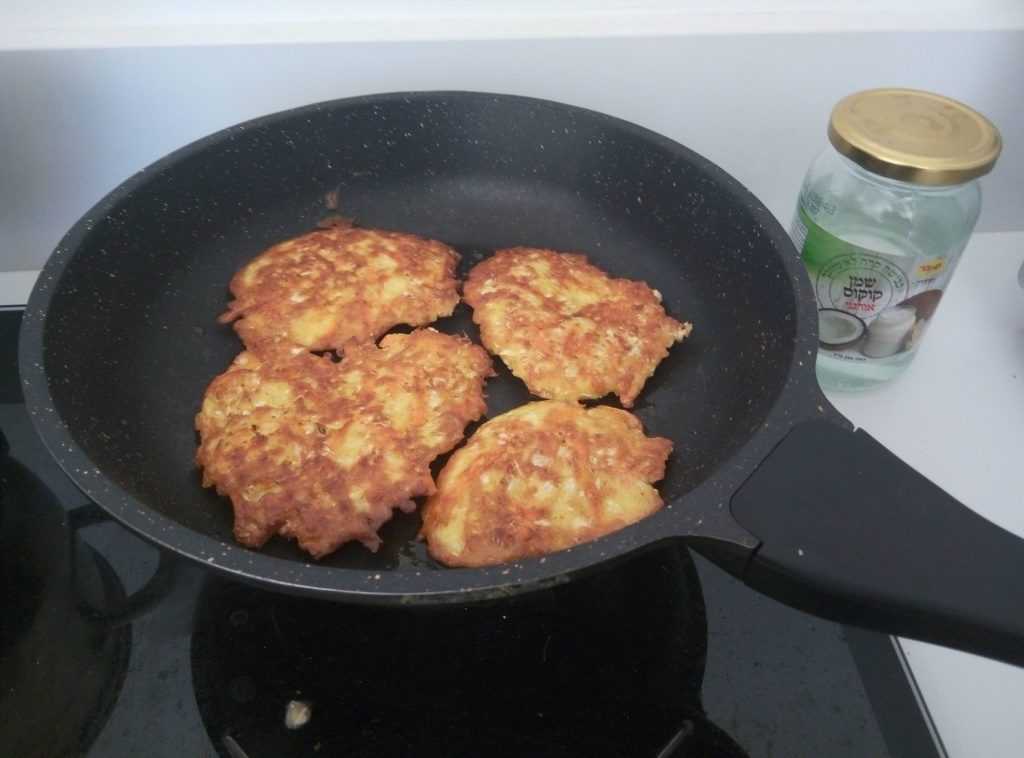Шаг 4. Выкладываем ложкой на разогретую сковородку (используя или не используя масло – в зависимости от того, какая у вас сковородка и какие у вас пищевые привычки) и обжариваем с двух сторон. Я чаще всего в последнее время жарю на кокосовом масле или вообще без масла.