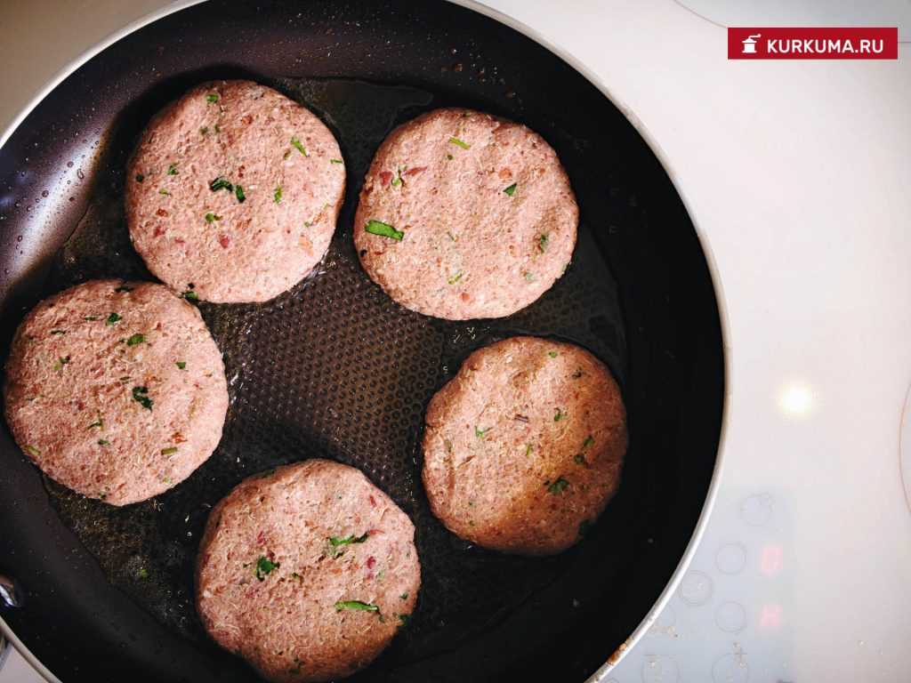 Старайтесь, чтобы котлеты для бургеров были чуть больше булочек. Потом мясо ужарится до нужного размера.