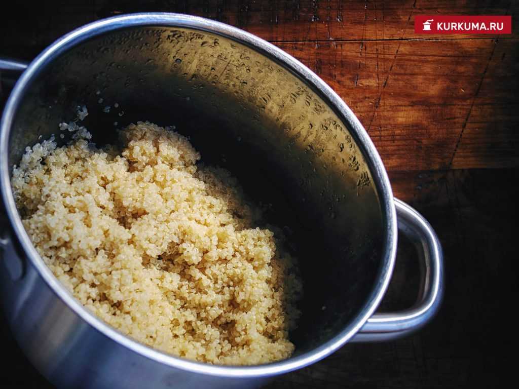 Киноа промываем (это важно, чтобы крупа не горчила), отвариваем в двух стаканах воды на среднем огне минут 15 до выкипания всей воды