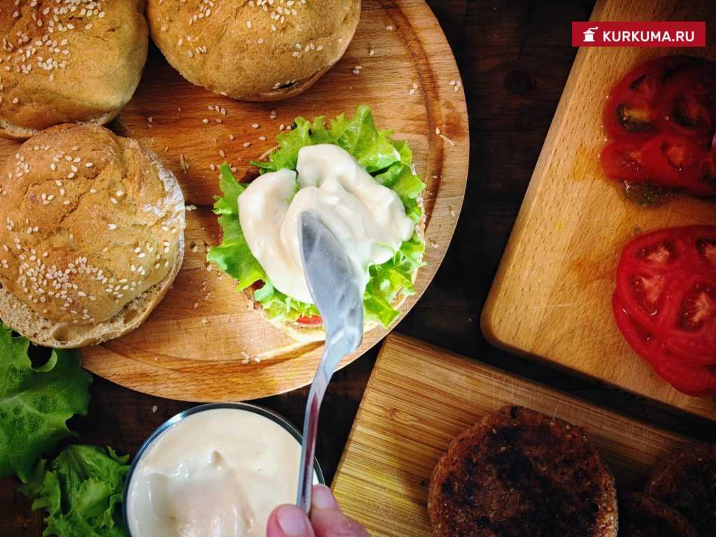 - майонез на аквафабе или любой соус для гамбургеров на ваш выбор