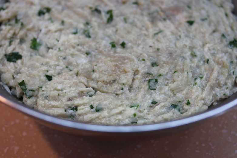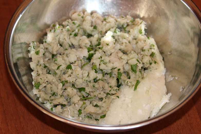 По удалении костей, отправляем филе в мясорубку, или фудпроцессор, вместе с петрушкой. Лук надо измельчить отдельно, чтобы не получился либо слишком мелкий рыбный фарш, либо слишком крупные куски лука.