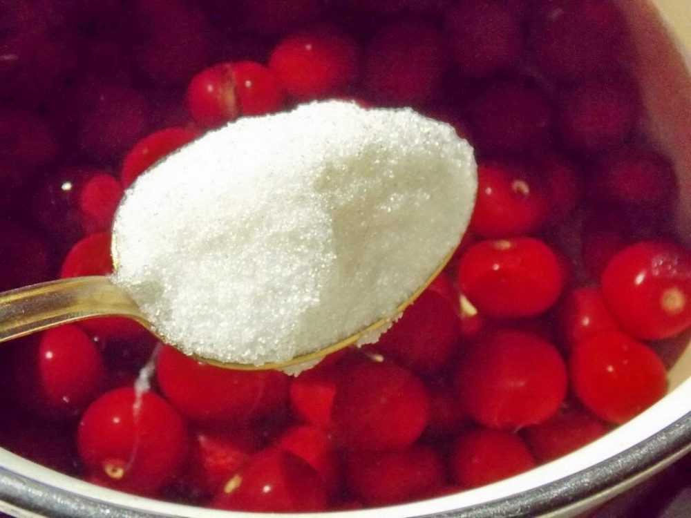 Количество сахара — только по вашему вкусу. Для начала стоит добавить на 400 гр вишен 2 ст. л. сахара, затем по желанию можно дополнительно подсластить напиток во время варки. Засыпать вишни сахаром и оставить на 1 час