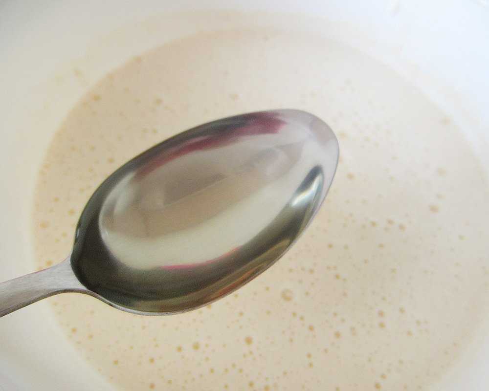 Кефир слегка согреваем на небольшом огне. Чтобы избежать сворачивания – во время согревания его нужно непрерывно мешать при помощи ложки.