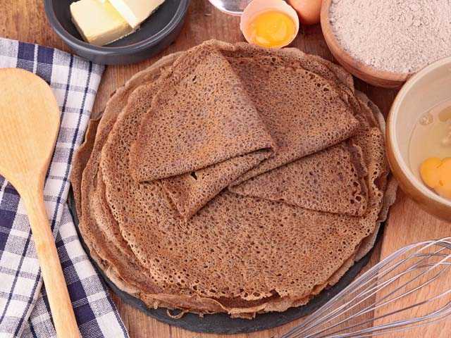 Ажурные тонкие блинчики на горячем молоке без добавления яиц (из гречневой муки)