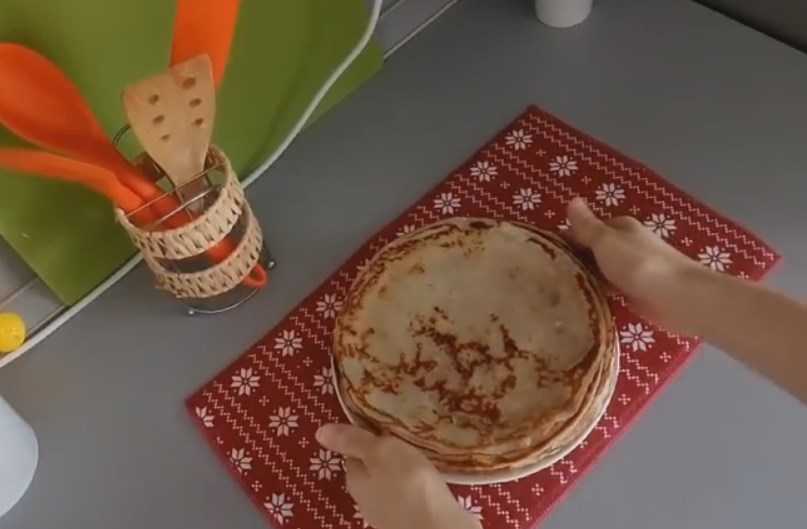Каждый готовый горячий блин можно смазать сливочным маслом, чтобы они не слипались между собой. Но в моей семье так уже не делается, из-за постоянно жирных рук после еды.