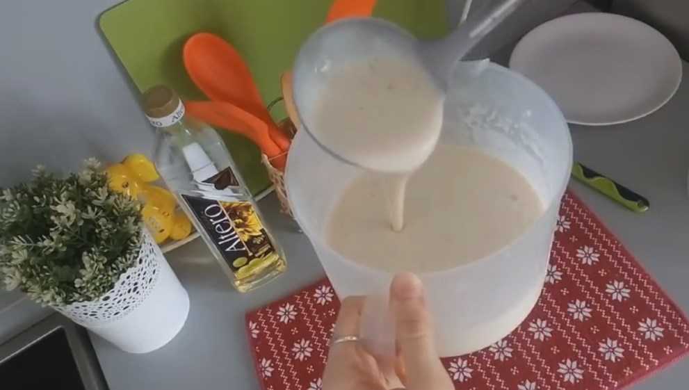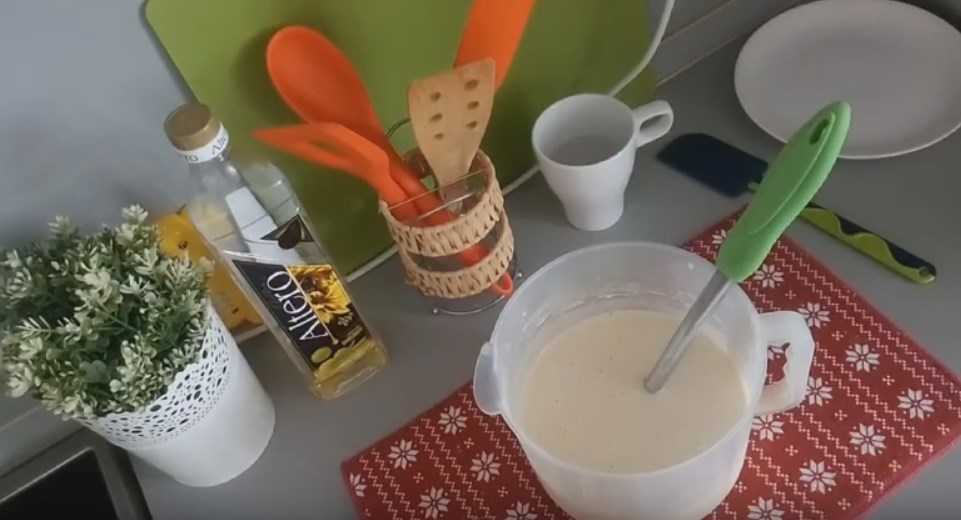 - Замешиваем тесто без комочков, если тесто получилось немного гуще положенного добавьте еще немного воды и перемешайте
