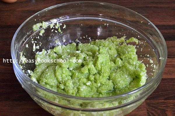 Далее нам следует измельчить их как можно тщательнее. Существует несколько способов: пропустить кабачки через мясорубку, натереть на мелкой терке, измельчить в блендере. Каждый из перечисленных способов хорош и даст нужный результат. В данном случае кабачки были измельчены при помощи блендера.