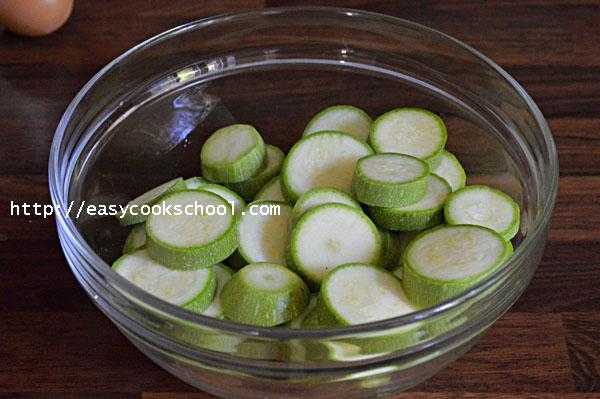Первым делом следует заняться кабачками и подготовить их для дальнейшего использования в блинном тесте. Молодые кабачки моем и нарезаем кружочками.