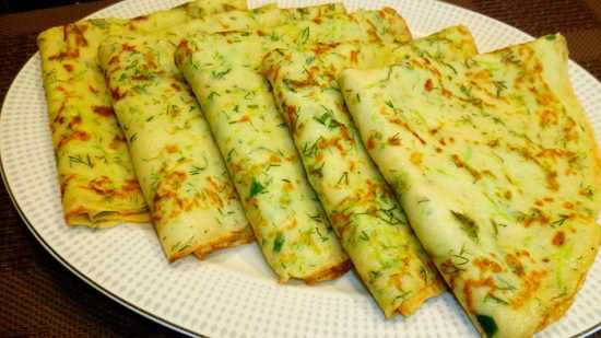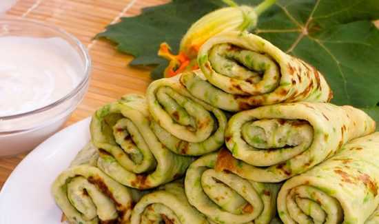- Блины из кабачков сворачиваются в трубочки либо конвертики, подаются к столу.