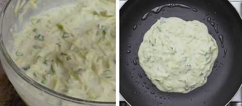 - Также, нельзя оставлять тесто настаиваться, его надо сразу же использовать после того, как оно будет размешено. Дело в том, что в кабачках много жидкости, и если тесто постоит чуть-чуть, оно станет очень жидким и из него уже не удастся пожарить блинчики. Если тесто уже успело стать жидким, в него можно добавить больше муки, но блинчики тогда получатся менее нежными.