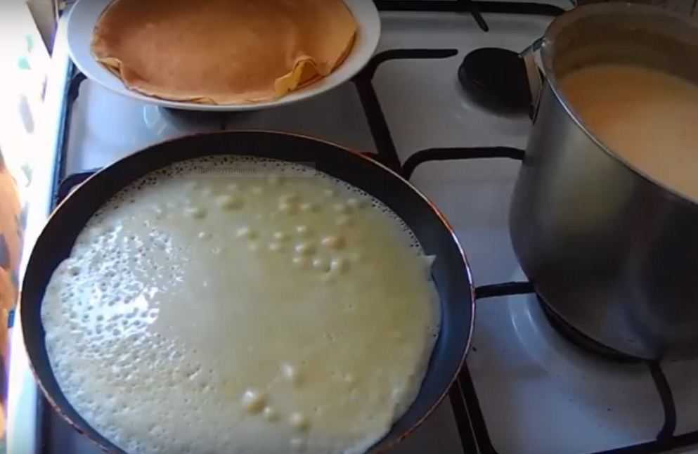 Открою один секрет при выпекании заварных блинов: как только вы их перевернули на вторую сторону, печем совсем недолго, буквально считаем один, два, три, четыре, пять и сразу снимаем! Такой способ позволит не пересушить нежное заварное тесто, сделать тонкие блинчики очень вкусными, нежными и эластичными. И тогда края у таких заварных блинов на молоке не будут ломаться.
